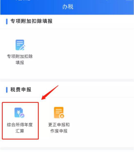 在办税页面,点击“综合所得年度汇算”