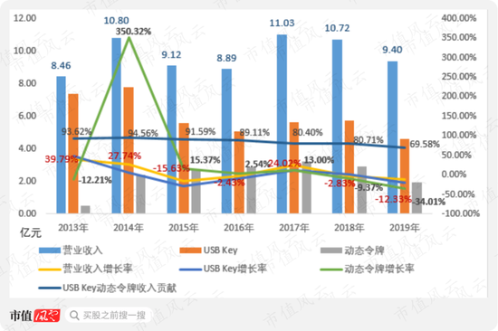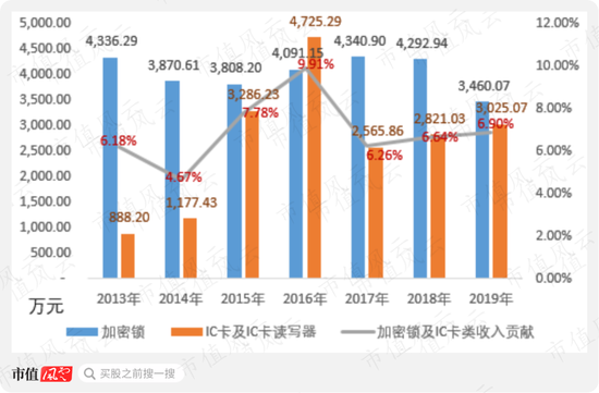 而上市时的加密锁和IC卡业务,除个别年份收入爆发外,营收规模未发生明显变动,整体收入贡献在6%上下。
