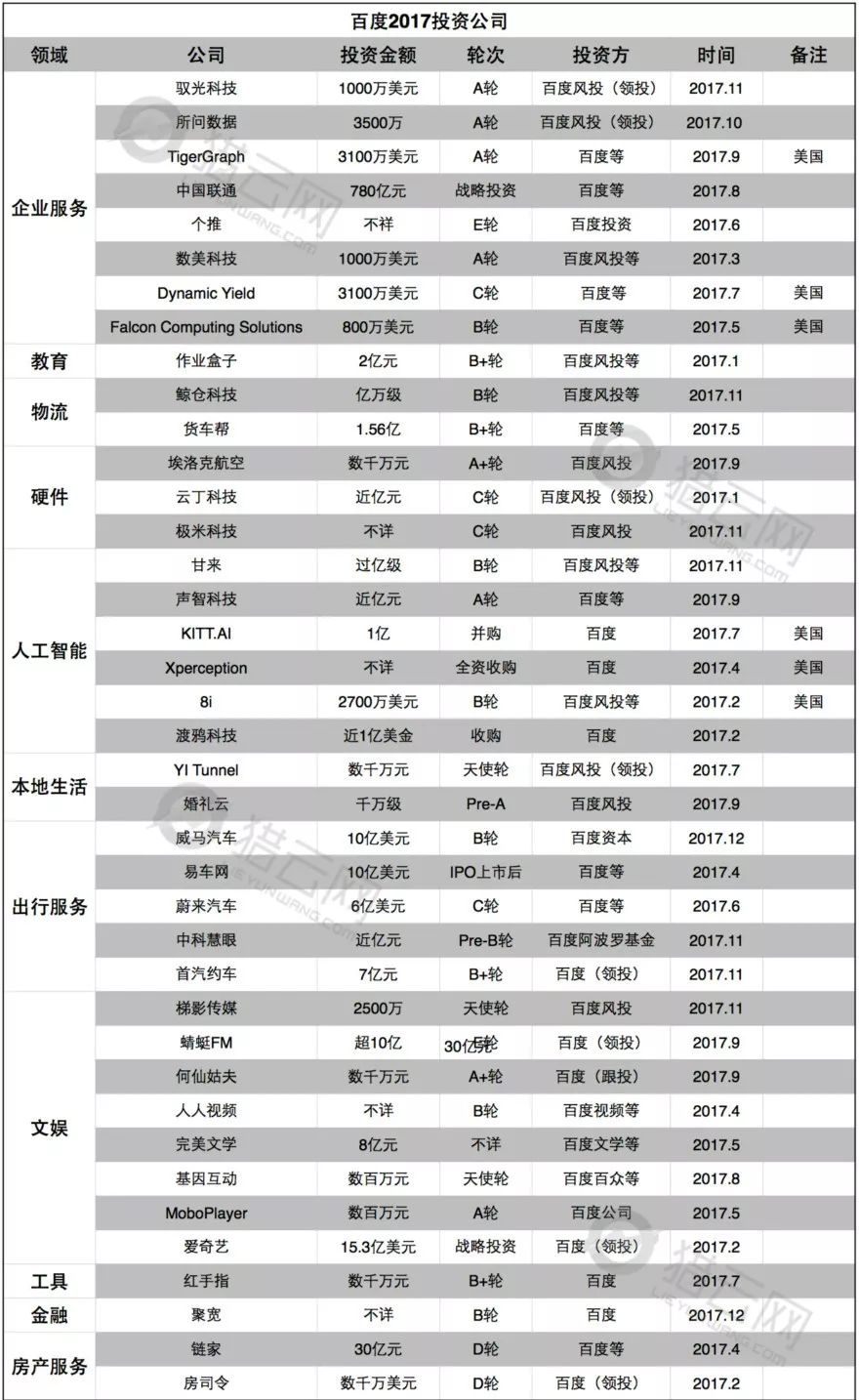 从投资的行业来看,百度的投资策略一向和公司的业务、战略息息相关。