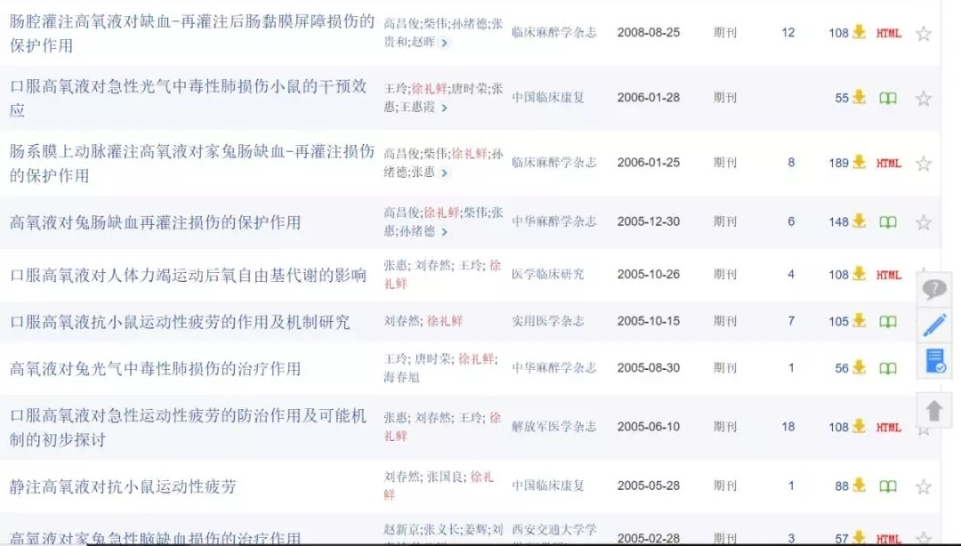 据中国知网检索的相关记录显示,高氧液对于相关症状的研究仍在动物试验阶段,相关研究获得了项目支持。