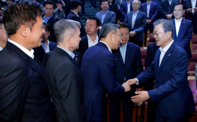 韩国总统文在寅会见韩国三大运营商CEO。图源:韩国时报