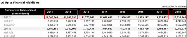 观察者网查询LG U+历年财报发现,该运营商总资产在最近10年里上了“两个台阶”。