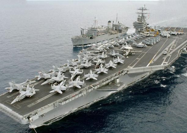 航空母舰本身就像是陆上的大型飞机场一样,只是一个运载平台,作战的主要武器是舰载机。除少数战斗值班的飞机外,考虑到海上烟雾侵蚀的影响,所以舰载机平时基本上都存放在飞行甲板下面的机库里。在机库与飞行甲板之间有4座大型升降机,每座升降机的提升力有60吨左右,一次可运载2架飞机。舰载机的起飞和降落需要蒸汽弹射器和着舰阻拦索。蒸汽弹射器长70多米,舰上共装有4部,可同时弹射4架飞机升空,60分钟内可保证40架飞机起飞。飞行甲板尾部设有4个阻拦索和1个阻拦网,阻拦索用来正常拦阻舰载机着舰,阻拦网是用粗尼龙绳编织的类似于排球网那样的强力网,主要是在飞行员受伤、飞机故障、阻拦索出现问题等意外情况时,保证飞机撞网后安全着舰的装置。
