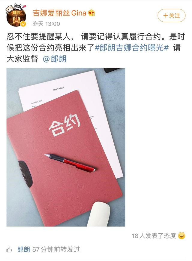 如今小伙伴又好久没有看到郎朗和吉娜了,大家最近几乎也把两人给忘记了,毕竟他们也不经常出镜,所以大家也很少关注他们了,不过近日吉娜突然发微博晒出了和郎朗的婚后合约大秀恩爱也是让不少观众和粉丝再次羡慕。 吉娜还配文说:忍不住要提醒某人, 请要记得认真履行合约。是时候把这份合约亮相出来了。随后郎朗也非常配合地发文说:我的甲方请放心, 我说到做到。4月15日和某平台一起见证我们的合约。两人的恩爱也是让网友吃了一顿大大的狗粮。 观众和粉丝看到两人的恩爱之后也纷纷留言道:郎朗晒婚后合约秀恩爱,约定15日送礼物,为吉娜提供拎包服务,两人的甜蜜约定很有仪式感,让人觉得特别幸福,神仙夫妇,太爱这一对了,还有网友留言说:有本事生个孩子啊!没想到的是吉娜越来越习惯中国的生活了,还学会了隔空秀恩爱,真是甜蜜幸福的一对。