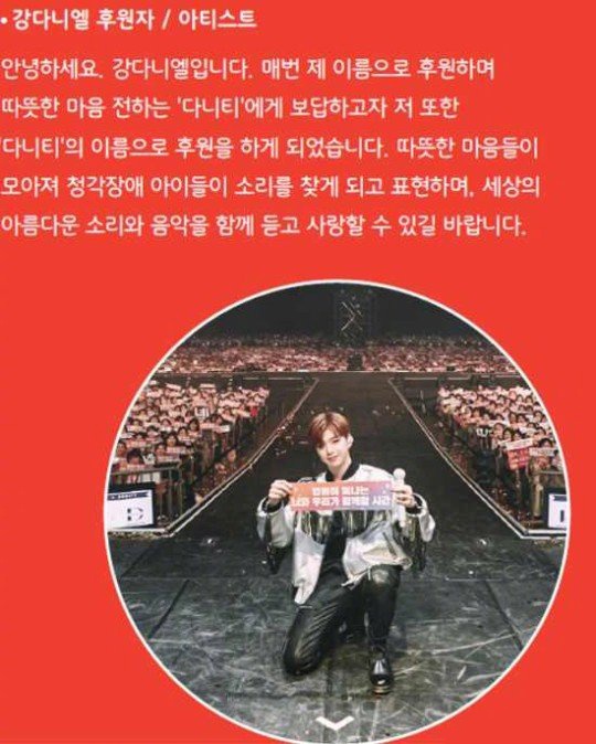 ,“爱心蜗牛”官方SNS公开姜丹尼尔传达的信息和一张照片,表示:“姜丹尼尔向爱心蜗牛和DANITY传达的信息~虽然很短,但这是能感觉到真心的感谢问候。会记住这份心意的!” 在公开的信息中,姜丹尼尔表示:“大家好,我是姜丹尼尔。为了报答每次以我的名义进行捐赠并传达温暖心意的‘DANITY’,我以‘DANITY’的名义进行了捐赠。温暖的心聚集到一起帮助听觉障碍的孩子们寻找声音,希望他们能一起聆听和热爱世界美妙的声音和音乐。” 在公开的照片中,姜丹尼尔和众多粉丝在一起,拿着一张“永远闪耀的你和我们在一起的时间”的手幅。