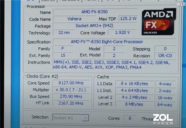 一提到AMD,现在大家都口口相传“AMD YES”,但时间往前推几年,那会儿AMD的处境与现在相比,可谓天上地下。FX-8350是AMD发布的一款极具代表性的产品,显著的特点就是高频低能。有超频高手重新翻出这款处理器进行了超频,而且达到了惊人的8.1GHz。 具体达到的数据为,在全核心开启情况下,FX-8350的主频为8127MHz,外聘270.9MHz,倍频30×,电压高达1.920v!超频高手并没有透漏该频率下的功耗,不过在7.5GHz下,单个核心功耗高达100W,八个核心就是800W! 估计超频至8.1GHz估计没法稳定,所以跑分是在7.5GHz下得到的。从单核心测试情况来看,Cinebench R15单核心成绩为172cb,不及锐龙5 2600X,技术进步相当明显。