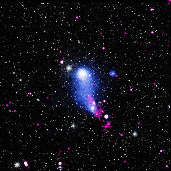 近日,NASA公布了一张星系碰撞照片,两个相撞的星系之间形成了一道“星系之桥”。本次碰撞发生于名为Abell 2384的星系团,该星系距离地球大约有12亿光年的距离。而两个星系发生碰撞后,释放的能量和炙热气体形成的“桥梁”长度超过300万光年,质量达到6万亿个太阳质量。其中“桥梁”北部的射电辐射要比南部更弱,研究人员推测这是北部射电辐射被碰撞后产生的炙热气体降速的原因。