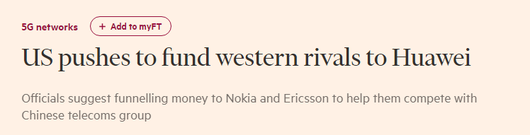 今年10月,美国政府还曾考虑给诺基亚和爱立信提供资金,企图以这种方式壮大华为竞争对手,挤走华为市场份额。但诺基亚和爱立信拒绝了这个提议。