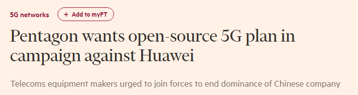 美国打压华为又出新招。这次是五角大楼提议,呼吁美国电信运营商抱团开发5G,要求美企向本土竞争对手开放各自技术,美其名曰“开源5G”,以此和华为抗衡。