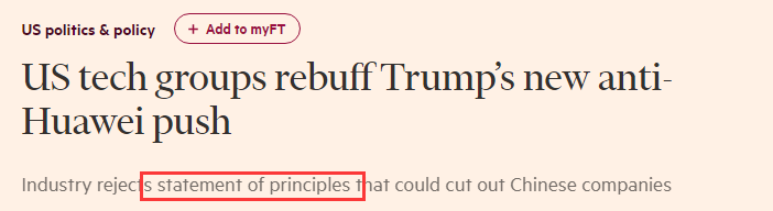 为打压华为,美国政府近期花招层出。除了拟定“实体清单”外,特朗普政府在上周又被曝拉拢美国企业签订所谓“原则性文件”,要求后者承诺不再购买华为等中国企业的设备,但遭行业代表拒绝。