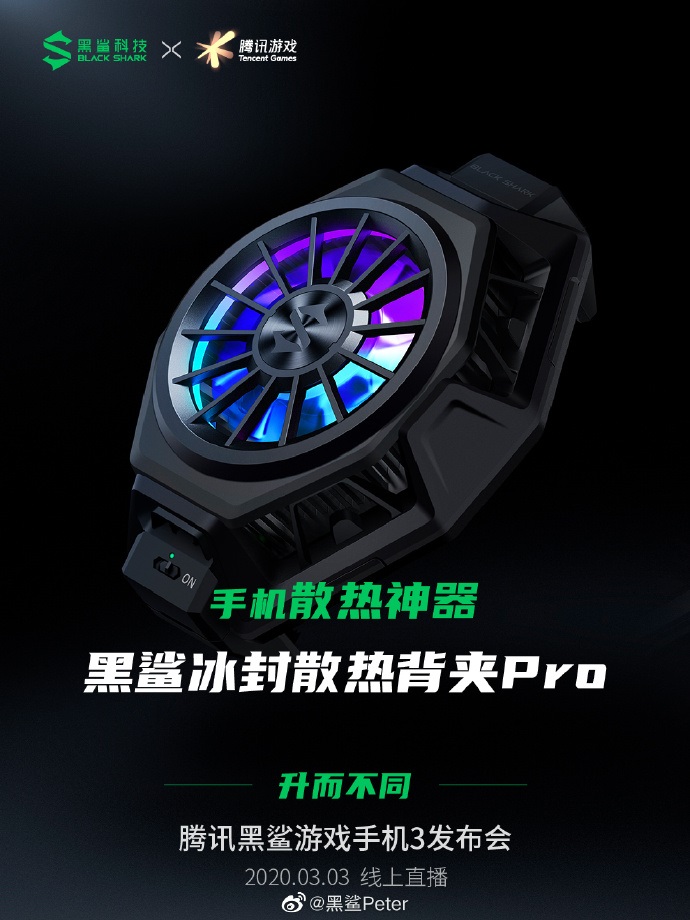 腾讯黑鲨游戏手机 3月3日正式发布,线上发布会同时直播。现在,黑鲨科技董事长 介绍了手机散热背夹Pro版,相比小米10发布会上推出的普通版增加了RGB灯效。
