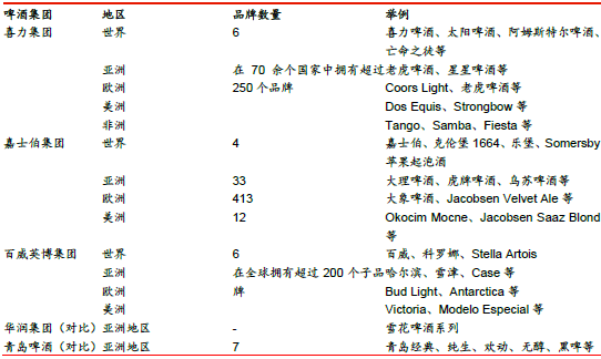世界性啤酒集团通过并购扩张市场,品牌组合包含历史悠久高端品牌