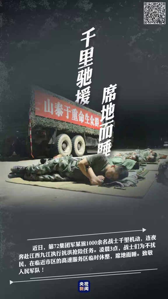 7月,战士们持续战斗在抗洪一线,奋不顾身。他们,把满身伤痕当作勋章,手脚沾满泥土的芬芳,年轻的肩膀扛起人民的期望。这样一群人,从来都不会被辜负,聋哑大叔为消防员无声点赞;这样一群人,让我们爱得深沉。这样的队伍,必将战无不胜!致敬每一位抗洪抢险人员!