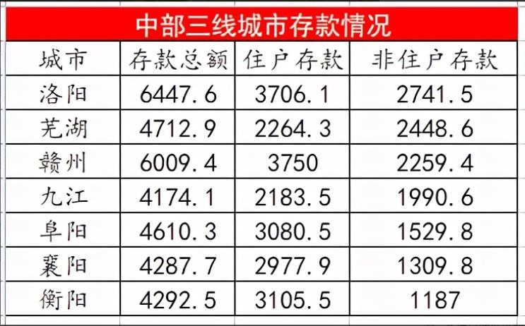 工业已经成为衡阳最大的软肋和伤口,工业不崛起,衡阳不可能止住人口失血之痛! 2、优势不优 衡阳有三大优势,人口、交通和区位,在三线城市中屈指可数,比之襄阳、赣州、岳阳要优越得多,但三大优势一个没发出来:人口流失144万,早已与人口大市渐行渐远;物流产业连同为三线的临沂的零头都不如,快递量更是被碾压(衡阳6148万件,临沂8.88亿件);作为周边最大城市,衡阳对邵阳、永州、郴州有吸引力吗,是湘南中心城市吗? 3、资本孱弱 2020年衡阳金融机构存款余额4292.5亿,其中住户存款3105.5亿,非住户存款1187亿,也就是说全市资本存量只有1187亿!这是什么水平?让我们对比一下: