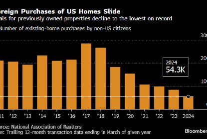 由于美元走强以及房源稀缺,海外买家对美国住房的购买量创下...