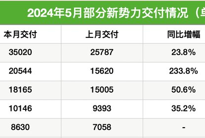 6月1日,多家新能源汽车企业公布了2024年5月的销售成绩。 ...