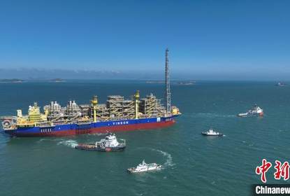 完成出境边防检查手续后,在两艘荷兰籍大马力拖轮的牵引下,由上...