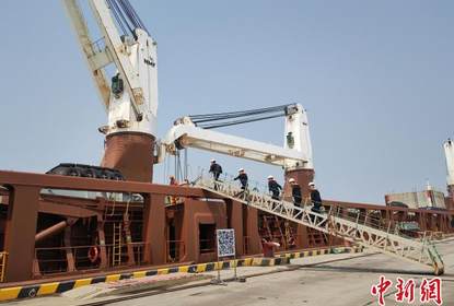 在浙江台州海关的监管下,两条由浙江合兴船厂建造的无动力驳...