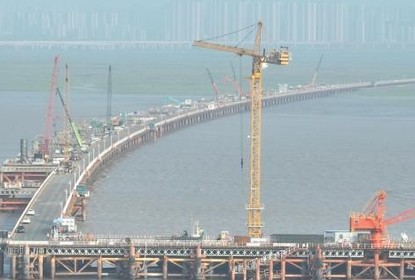 由中交二航局承建的通苏嘉甬高铁——杭州湾跨海铁路大桥南岸桩...
