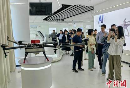 在山东淄博市萌山水库管理中心,一架无人机从机巢中起飞,按...