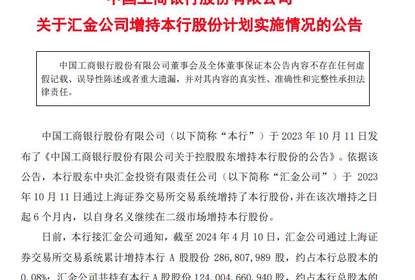 行、农行、中行、建行四大国有银行集体发布公告,介绍中央汇...