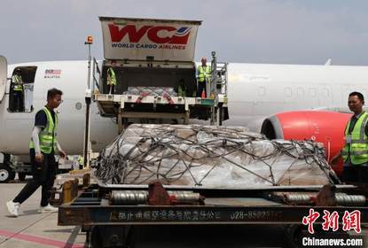 一架满载3094公斤货物的国际货运包机从缅甸仰光飞抵中国云南...