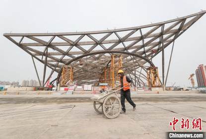 “‘京帆’屋盖钢结构施工已完成两片,第三、第四片钢结构施工...