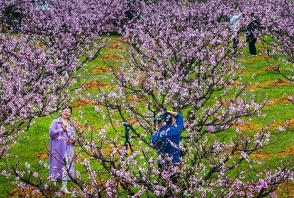 早春时节,江西九江市永修县云山集团凤凰山3000多亩桃花竞相...