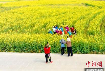 湖南永州市东安县横塘镇白滩河村油菜花基地游人如织。“我们...