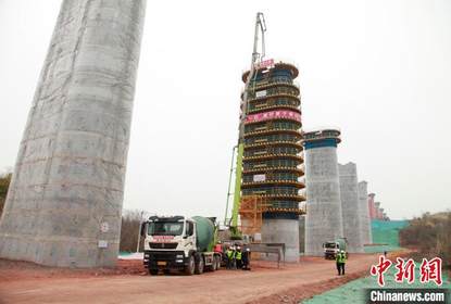 位于成都东部新区的成渝中线高铁土红湾特大桥下部主体工程全...