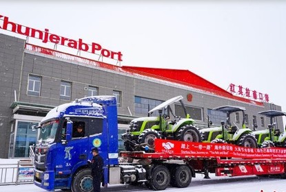 满载农业设备的27辆货车,自新疆红其拉甫口岸顺利出境,前往...