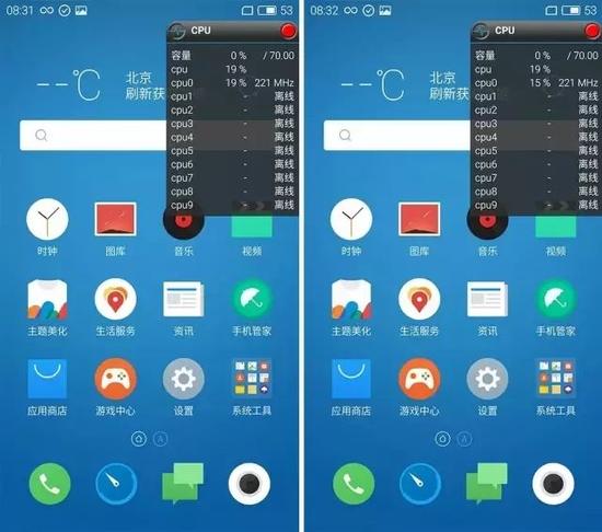 之所以有这样的情况出现,和Helio系列芯片的制程有很大关系。A72核心性能强劲,A53也不弱,但是两者同时工作,对于20nm制程的芯片来说确实压力山大。为了平衡功耗控制发热,防止十个核心全开手机Boom掉,因此日常使用中联发科并没有将十个核心全部开启。
