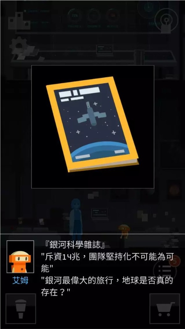 然而情况急转直下,翻开《银河科学杂志》,硕大的标题映入眼帘:“斥资 14 兆……地球是否真的存在?”墙角里躺着特殊情况应对手册和医疗箱,揉皱的纸团上书:“跟我想的一样,地球果然不可能存在”。