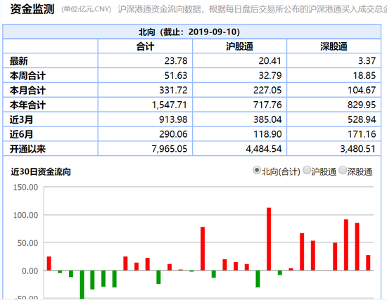 随着全球三大指数陆续将A股纳入旗下主要指数,北向资金也在持续买入A股,9月以来净流入已经突破300亿元,达331.72亿元,2019年以来净流入已突破1500亿元,达1547亿元。