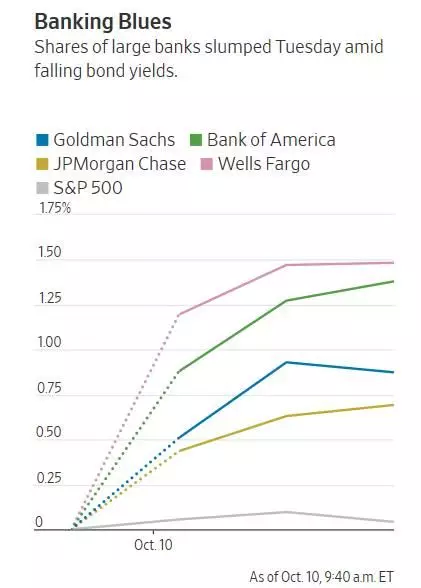 银行股未来前景黯淡的主要原因是全球利率的同步下滑。利率下降往往会损害放贷者的净息差,从而降低衡量盈利能力的一个关键指标。随着美国国债收益率在9月下旬后又开始下滑。债券收益率下降,特别是长期债券收益率下降,通常会损害银行股,因为当短期存款成本和长期贷款利率之间存在较大差异时,银行股的利润率才往往会扩大。投资者还押注美联储今年将再次降息,这可能会进一步对银行利润率造成潜在压力。