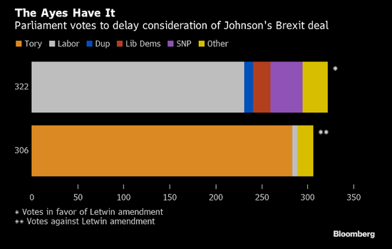 在周六议会的失败之后,约翰逊并有机会看到议会议员是否会支持他从布鲁塞尔带回的协议。他现在计划在不到两周的时间内通过立法。《脱欧协议法案》最快将在周二提交议会,如果约翰逊周一能让议会在协议的基本原则上签字,那么延期脱欧将变得不必要。