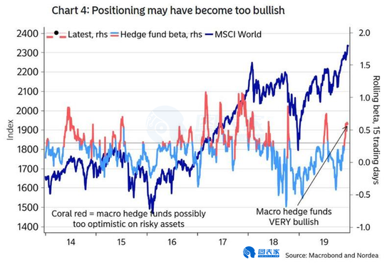 北欧联合银行(Nordea)上周末指出,如果市场参与者做空高风险资产,那么股市上扬通常会变成痛苦的交易,例如,去年9月,宏观对冲基金实际上减持了股票。