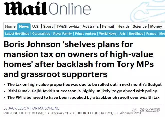 据《每日邮报》报道,鲍里斯在受到保守党后排议员以及大批富豪的集体反对下,搁置了针对高价值住宅业主征收豪宅税的计划。