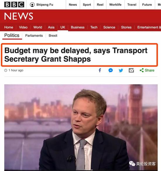 昨天(2020年2月16日),英国交通大臣Grant Shapps在接受《天空新闻》采访时就特别暗示今年的预算案很有可能会被推迟。