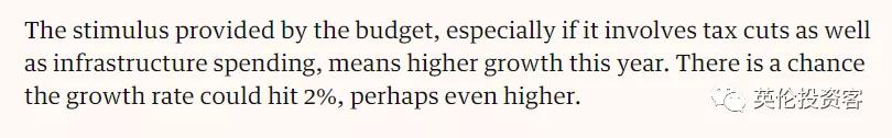 据《卫报》预测,英国预算案中的经济刺激措施,将包括减税和增加基建开支,这意味着今年英国将会得到更高的经济增长,可能会达到2%或者更高。