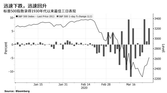 在以有史以来最快的速度跌入熊市后,标普500指数又创下90年来最快的三日上涨。道琼斯(21636.7793, -915.39, -4.06%)指数周四创下自1931年以来最大三日百分比涨幅,并重返牛市,三天内市值增加超过2万亿美元。