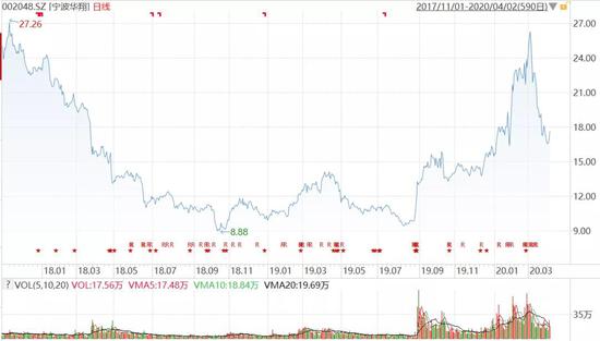▼ 附图:2017年底以来宁波华翔股价走势
