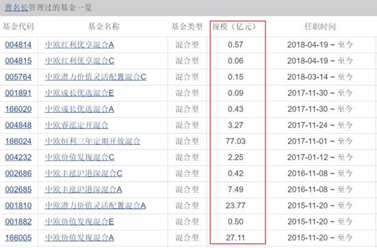 第二个挑战是,截至2019年底,曹名长共管理7只基金,总管理规模143亿元,其中中欧恒利规模就占去一半。