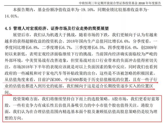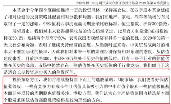 ▼ 附图:中欧恒利2019年年报市场展望及投资策略部分