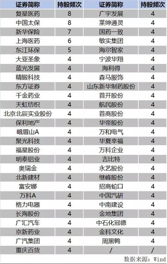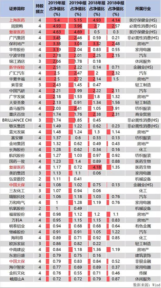 其中,有53只股票在过去2年多一直被持有,复星医药(32.960, 0.96,3.00%)、中国太保(27.710, -0.54, -1.91%)、新华保险(40.670, -0.13,-0.32%)、上海医药(18.930, 0.19, 1.01%)、东江环保(9.230, -0.09,-0.97%)等,不但A股股票被基金持有,对应H股也被曹名长列入长期持股名单中。