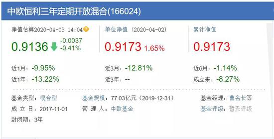 结果就是,中欧恒利让同样也是基金持有人的曹名长浮亏不少。