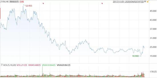 ▼ 附图:2017年底以来港股复星医药股价走势