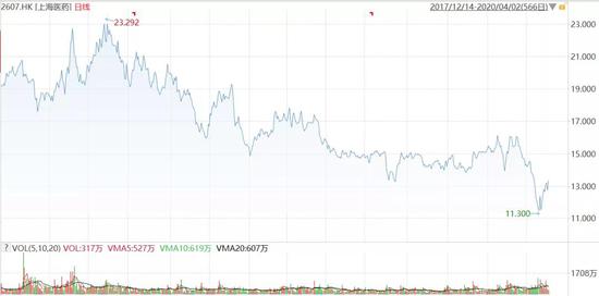▼ 附图:2017年底以来港股上海医药股价走势