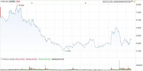 ▼ 附图:2017年底以来港股周黑鸭股价走势