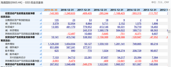 从现金流量表来看,公司自2013年以来,经营现金流净额不断流出,2017年更是流出了41亿,2018年流出124.06亿元,2019上半年年流出14.36亿元,公司经营现金流状况隐忧明显。